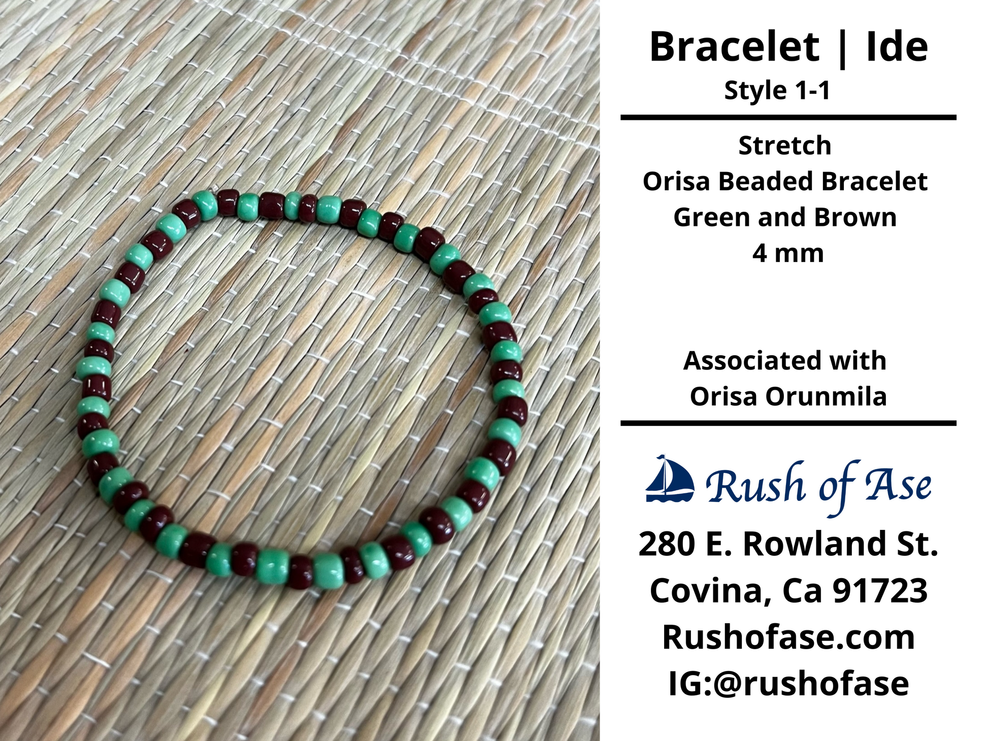 Bracelets | Ide | Stretch Orisa Beaded Bracelet – Green and Brown – 4 mm | Orunmila Bracelet - Style 1-1