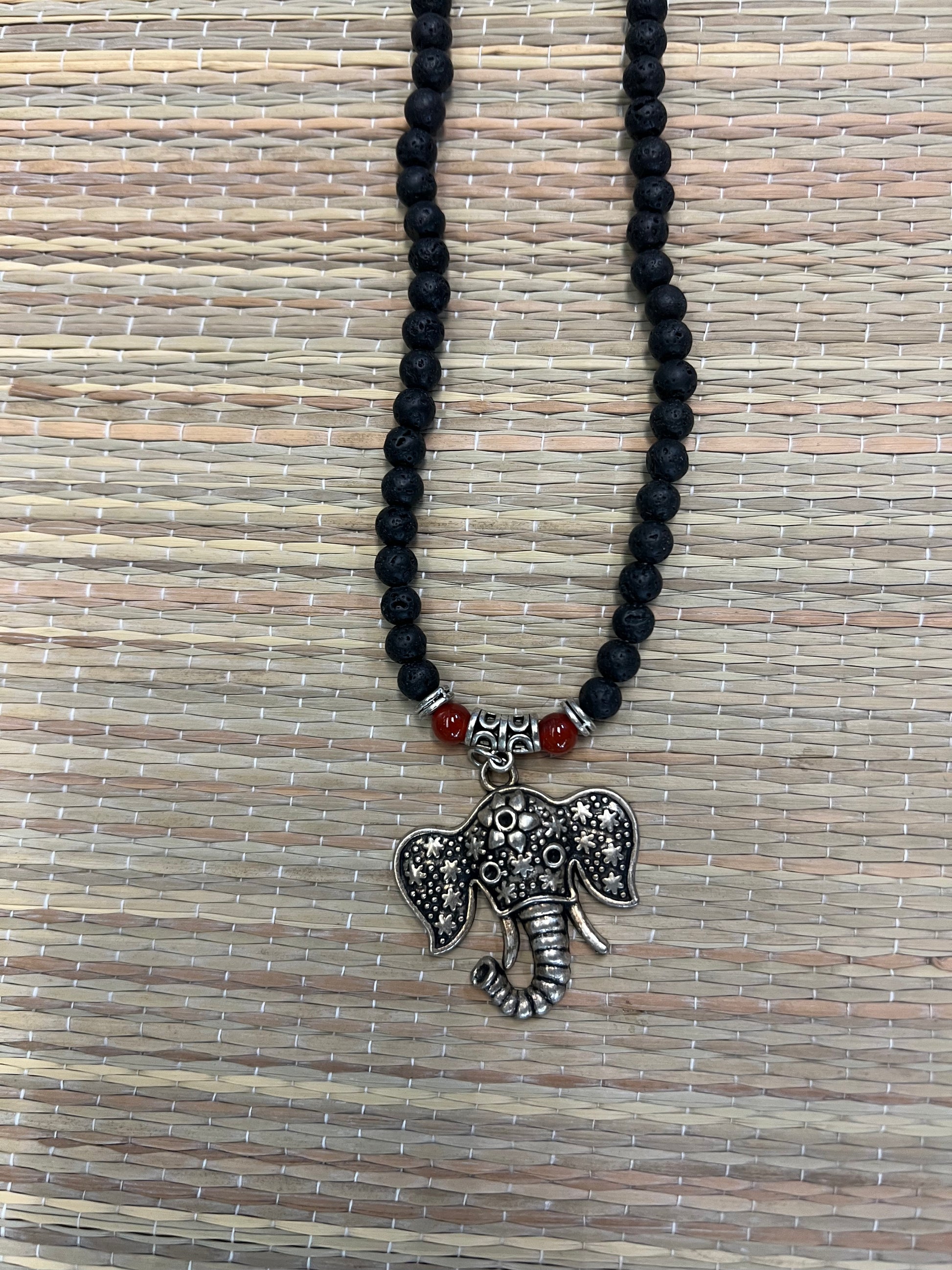 Necklaces | Stone Necklaces | Lava Rock and Carnelian Necklace - Elephant