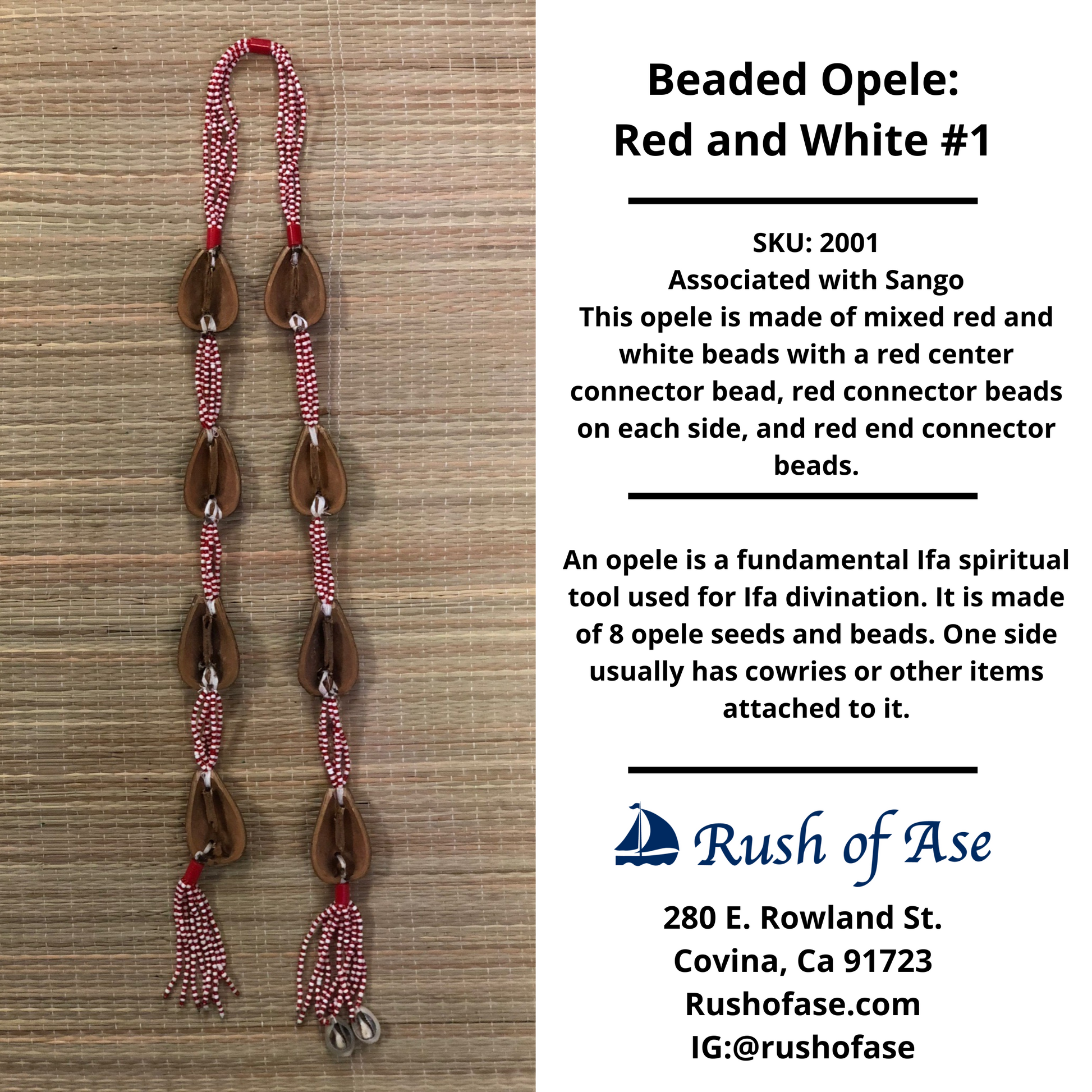 Red & White Beaded Opele #1 (SKU 2001) – Red/white beads with red connectors. Associated with Sango.