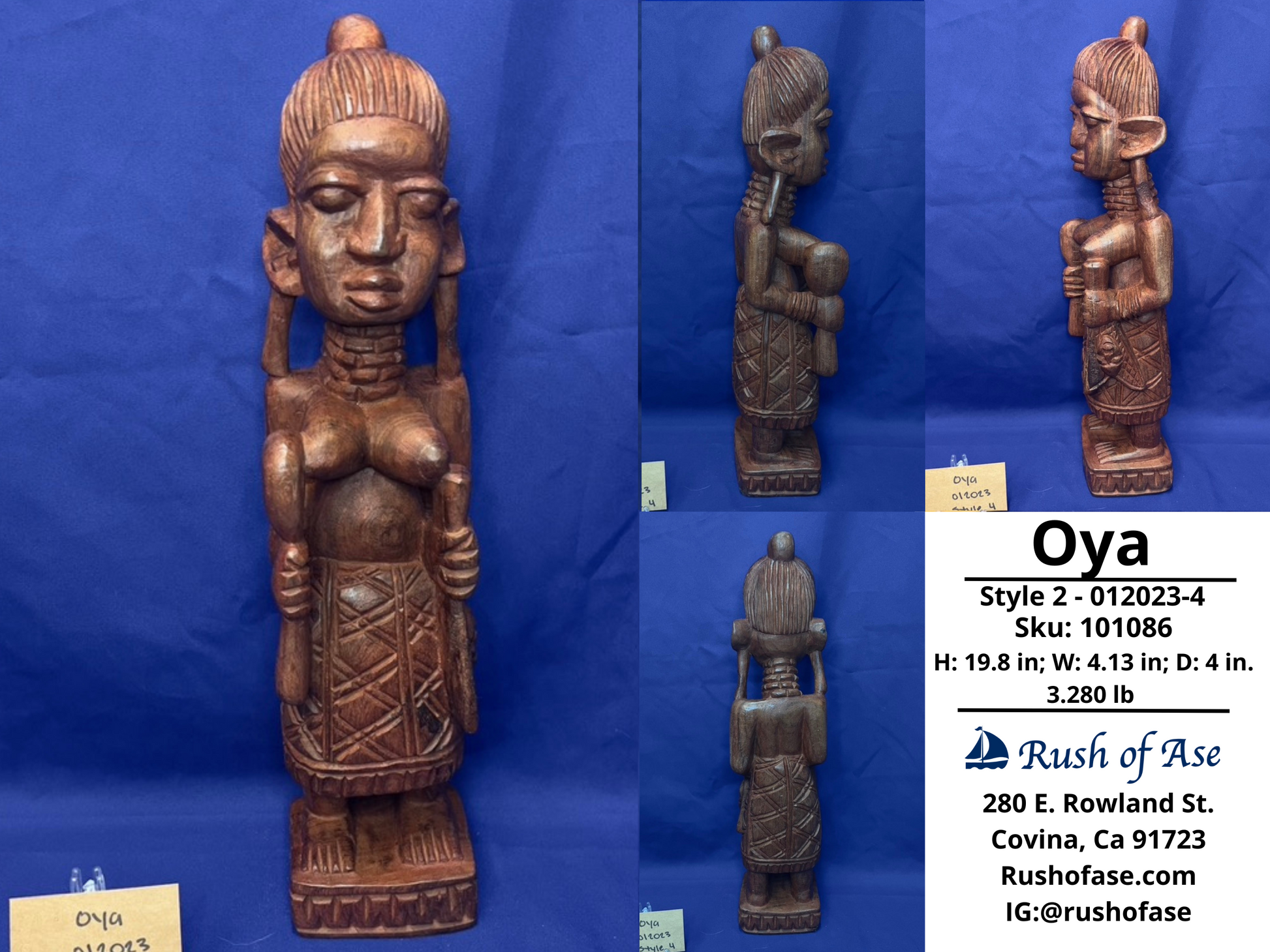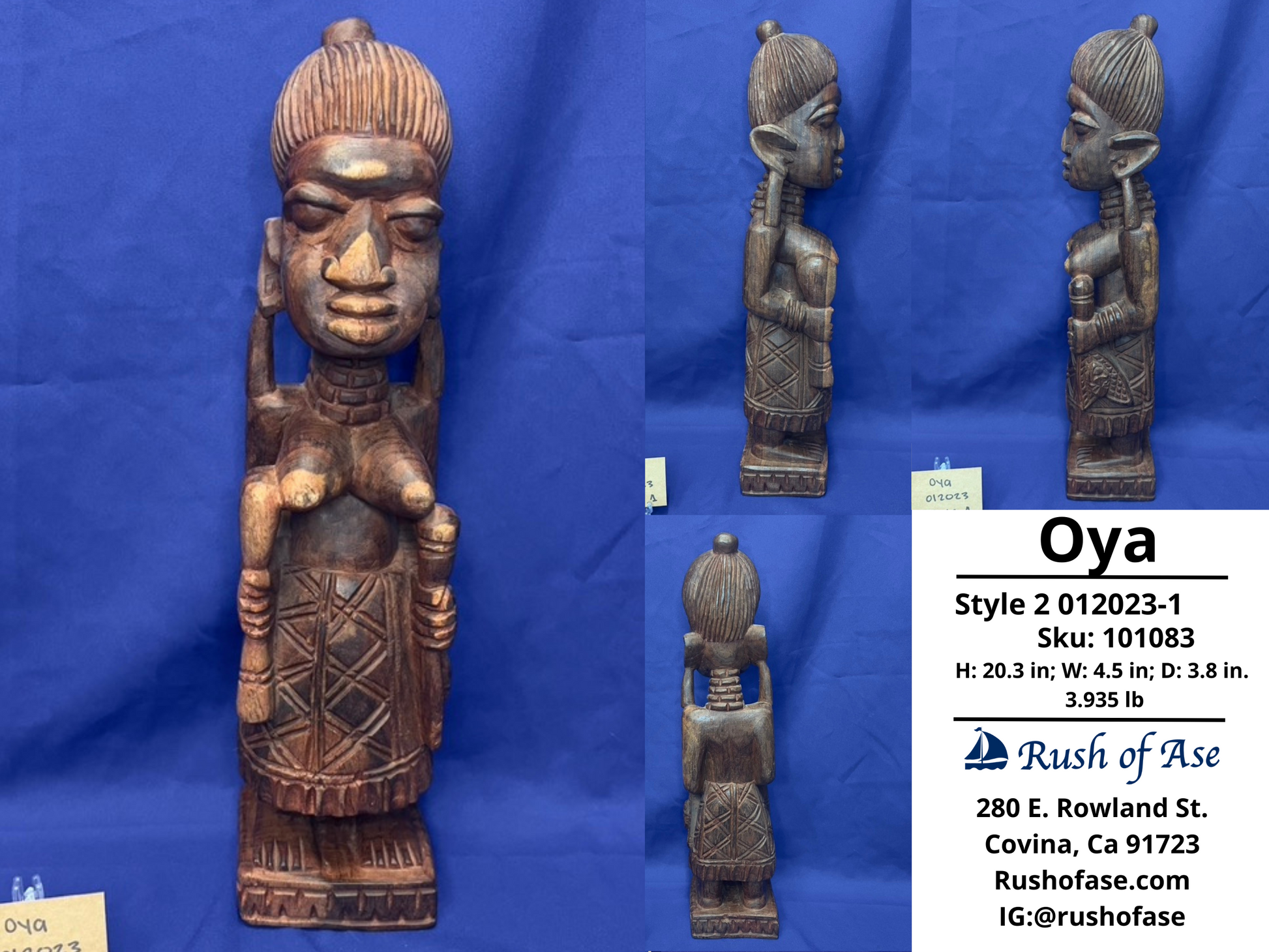 Hand carved wood statue imported from Oyo State, Nigeria.