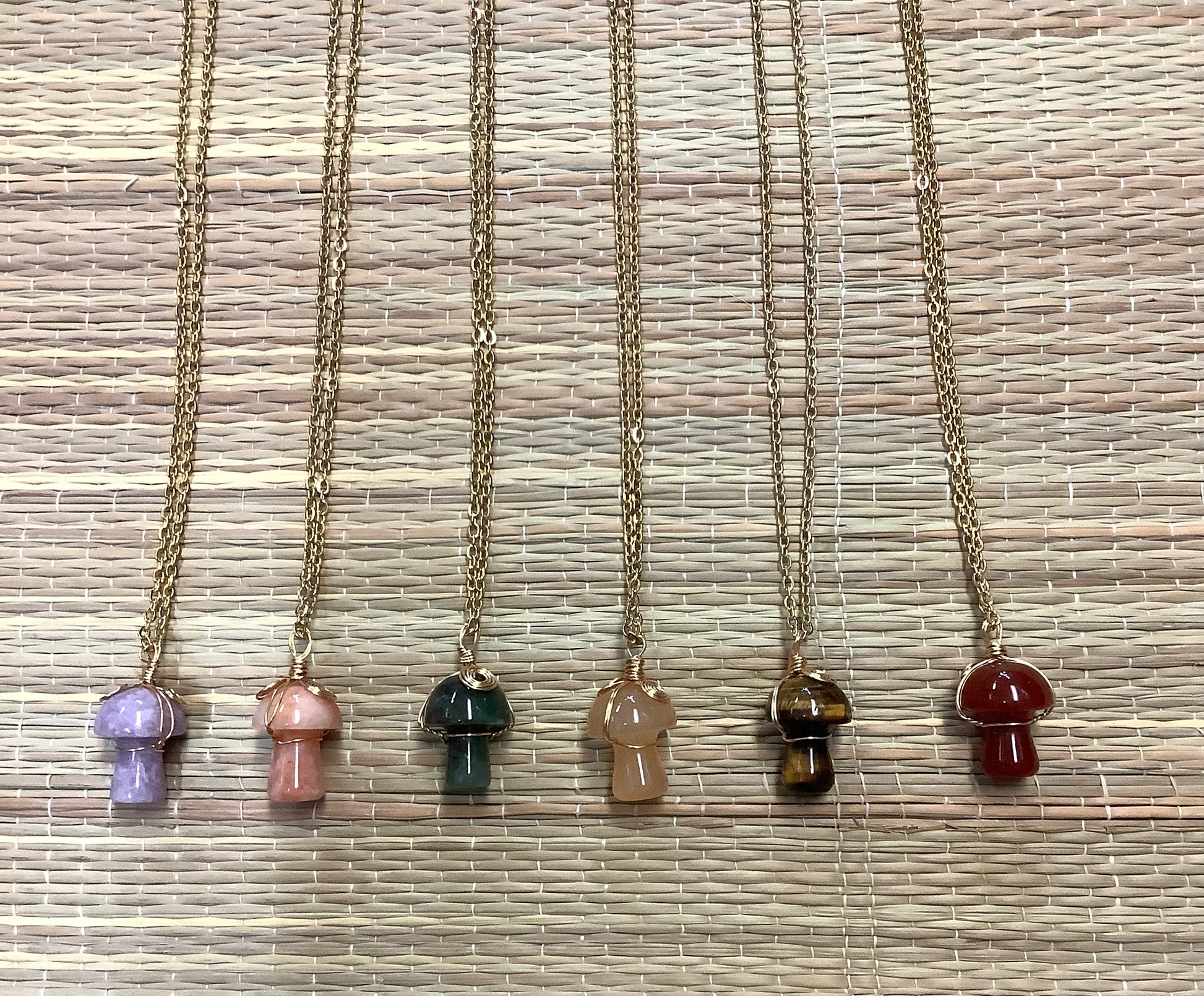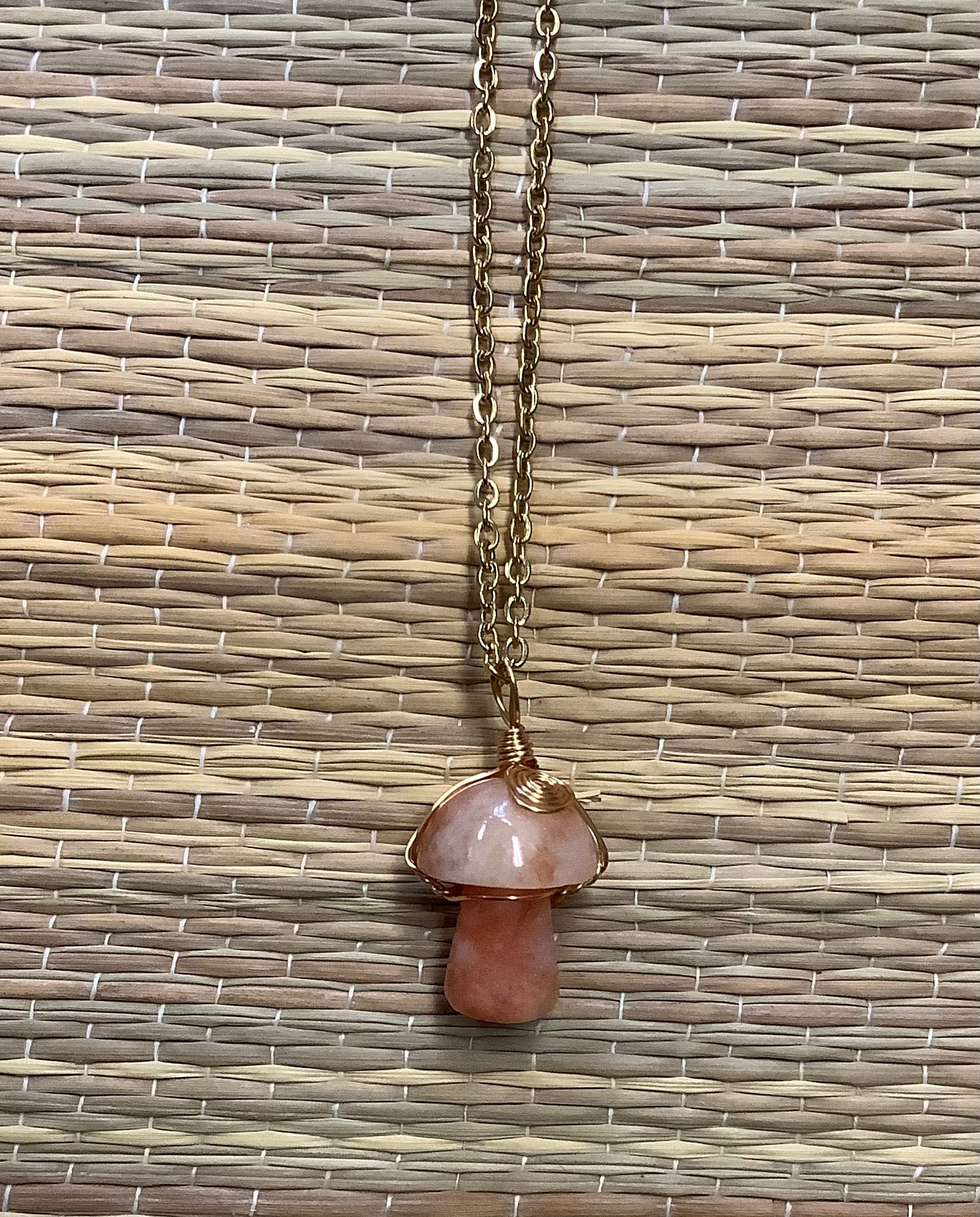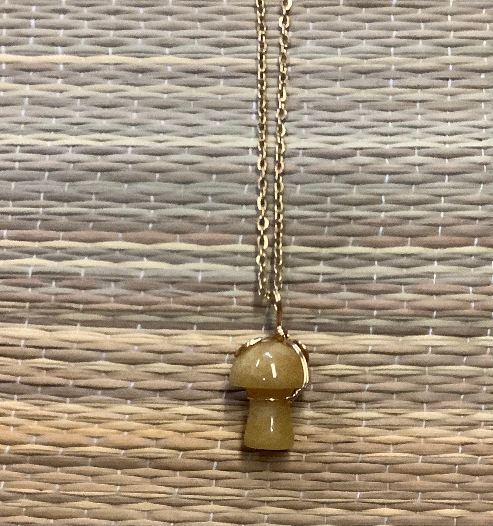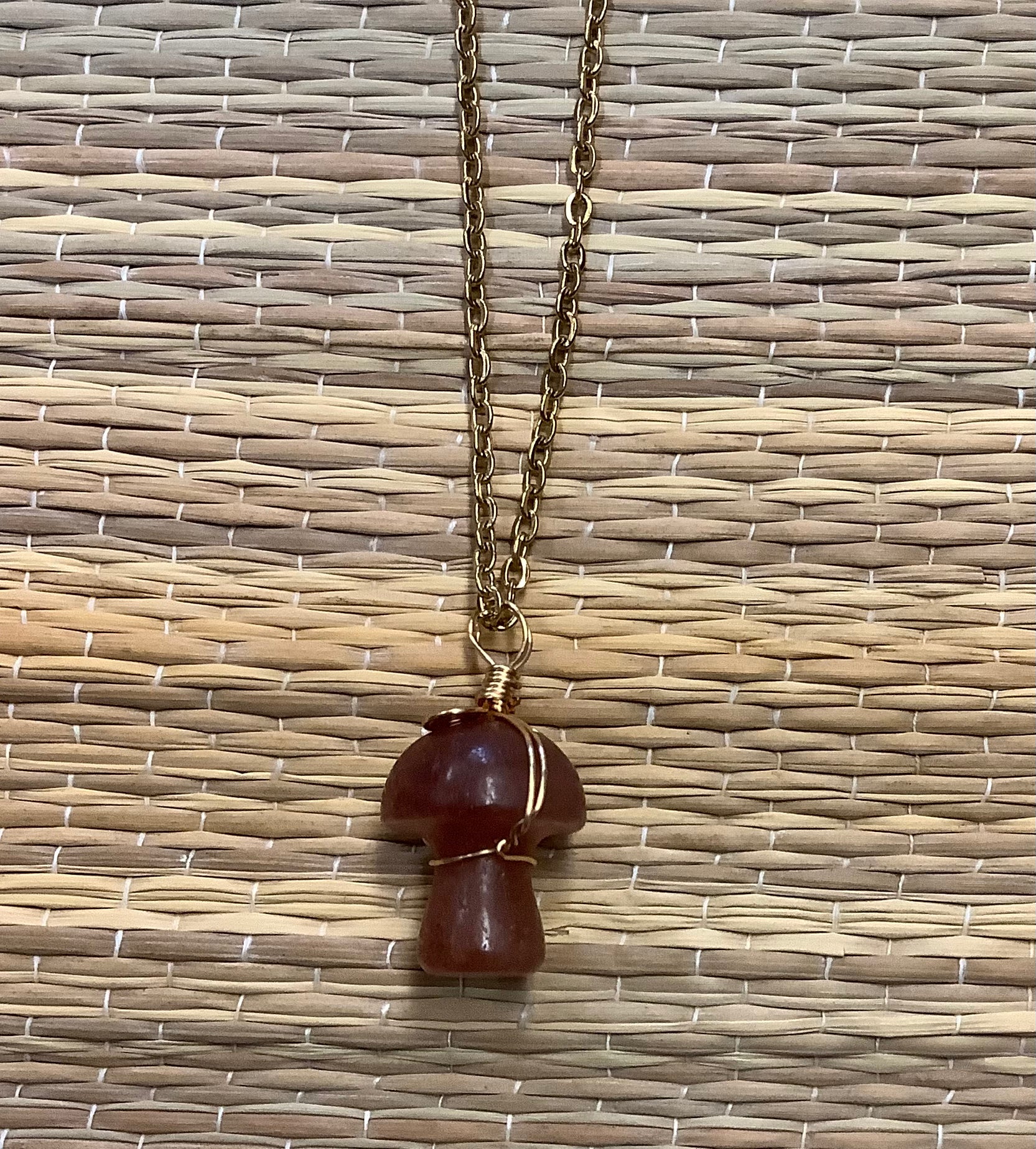 Natural Stone Mushroom Pendant on a 24" gold chain.