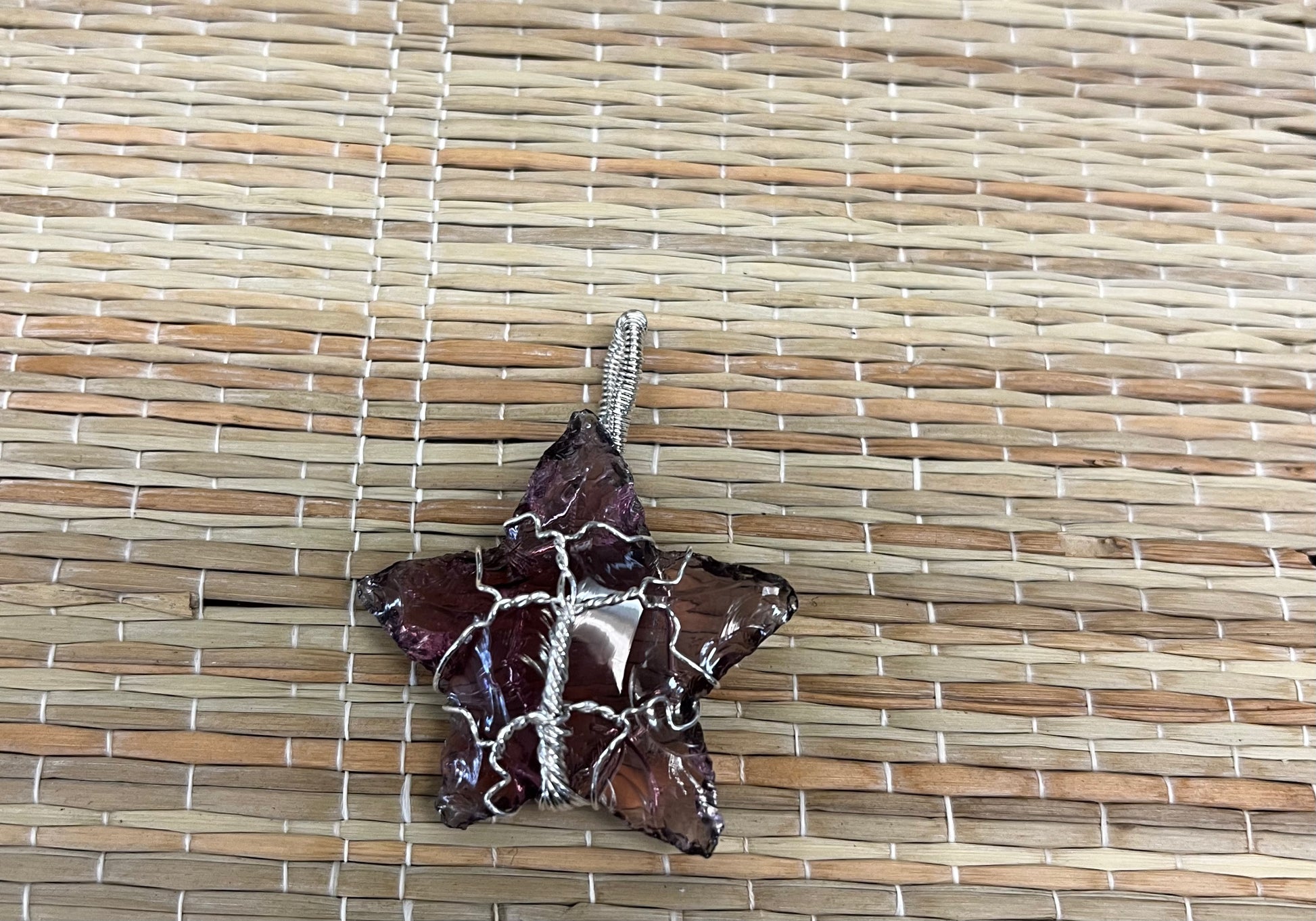 Handcrafted Halo Amethyst star with tree of life wire wrap.